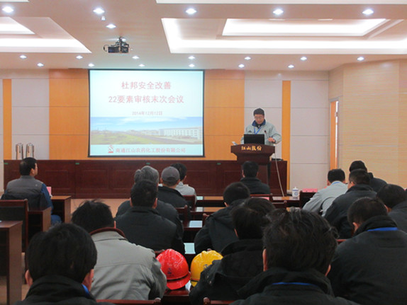 該公司高管、各部門第一責(zé)任人、生產(chǎn)技術(shù)副廠長,工藝、安全、設(shè)備主管及杜邦審核老師約60人參加會議。