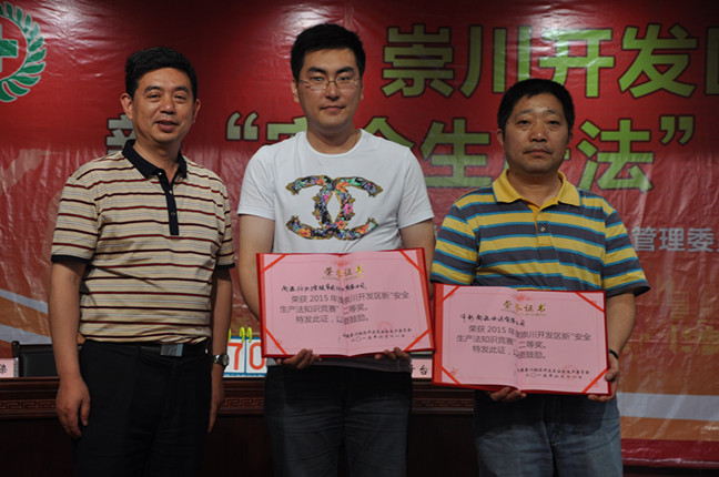 由崇川開發(fā)區(qū)安全生產委員會組織的新“安全生產知識競賽”于6月11日下午在金通靈公司舉行,南通紡織控股集團紡織染有限公司由陳杰明帶隊,陳云莉、王建興、吉王倩三人組成的代表隊參加了此次比賽。經(jīng)過緊張激烈的角逐,最終,紡織染代表隊榮獲比賽二等獎,南通崇川區(qū)安全監(jiān)督局副主任毛長平為我公司獲獎隊員頒發(fā)了榮譽證書。