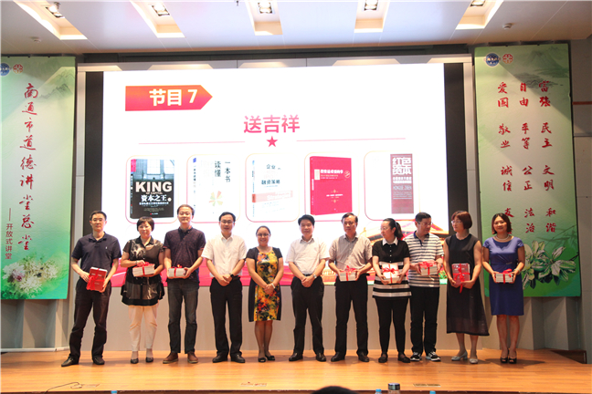 本次活動圍繞“誦經(jīng)典”“學(xué)模范”“展風(fēng)采”“話廉潔”“觀情景劇”“談感悟”“送吉祥”“唱歌曲”八個環(huán)節(jié)開展。詩朗誦《實干才能夢想成真》重溫了習(xí)總書記提出的“中國夢”,堅定了大家在平凡崗位上創(chuàng)造不平凡的信心;江天化學(xué)吳松華、精華集團朱玉娟兩位同志的先進(jìn)事跡讓大家在身邊人、身邊事中找到感動;情景劇《春風(fēng)里的故事》讓大家在忍俊不禁中體味到資產(chǎn)管理一線員工的不易和他們迎難而上的信心;一曲《真心英雄》展現(xiàn)出了集團職工團結(jié)向上的蓬勃朝氣,也將活動推向高潮。在“送吉祥”環(huán)節(jié),集團領(lǐng)導(dǎo)將精心挑選的《投資最重要的事》等金融書籍贈予各投資企業(yè)代表,勉勵他們加強學(xué)習(xí),不斷創(chuàng)新,用拼搏和奉獻(xiàn)實現(xiàn)集團的跨越發(fā)展。