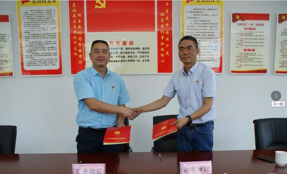 為進一步加強黨建工作,深化黨建工作內(nèi)涵,豐富黨建工作手段,創(chuàng)新黨建工作方式,圍繞中心工作,服務發(fā)展大局,充分發(fā)揮黨建引領企業(yè)發(fā)展之作用,7月4日上午,南通紡織控股集團紡織染有限公司黨委與浙江萬舟控股集團有限公司黨委在萬舟控股集團黨員活動室簽署了《黨建結(jié)對共建協(xié)議書》。 浙江萬舟是一家以專業(yè)研發(fā)生產(chǎn)時尚面料、紗線為主業(yè),集實業(yè)投資、資產(chǎn)投資、棉花收購、進出口貿(mào)易等多元化綜合發(fā)展的控股集團企業(yè),是省重大產(chǎn)業(yè)項目。旗下?lián)碛姓憬讯兰徔椨邢薰?、浙江蘭棉紡織有限公司、浙江萬舟進出口有限公司三家子公司。
