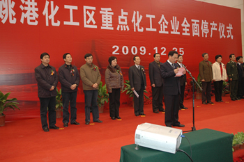 2009年12月25日下午,隨著市委副書記、市長丁大衛(wèi)按下指令按鈕,江山股份、寶靈化工兩家企業(yè)老廠區(qū)化工生產裝置全部停車。此前,星辰材料老廠區(qū)所有生產裝置和建筑物已于2008年停產并拆除完畢。至此,姚港化工區(qū)3家重點化工企業(yè)原廠區(qū)宣告全面停產,標志著歷時5年的姚港化工區(qū)搬遷工作基本完成,困擾周邊居民生活和企業(yè)發(fā)展的矛盾得以解決。 2005年,市委、市政府作出了姚港化工區(qū)重點化工企業(yè)于2010年底前搬遷入園的重要決策。五年來,市委、市政府高度重視老廠區(qū)搬遷和新廠區(qū)建設各項工作,并把姚港化工區(qū)重點化工企業(yè)搬遷列為市政府重點工作之一,按照“搬優(yōu)、搬強、搬環(huán)保、搬安全”的總體要求,精心組織、扎實推進。在市相關部門、崇川區(qū)政府、開發(fā)區(qū)管委會、產控集團和各搬遷企業(yè)共同努力下,搬遷工作有序推進,搬遷任務提前完成。 搬遷不是簡單復制。截至目前,市政府以產控集團作為運作平臺,支持姚港化工區(qū)三家企業(yè)搬遷,共撥付補償資金6.25億元,帶動企業(yè)完成投資43億元。政府的支持有力加快了企業(yè)搬遷改造步伐,促進了企業(yè)技術、裝備、管理水平大提升,為企業(yè)調整結構、做大做強奠定了基礎,為新一輪加快發(fā)展積蓄了后勁。為落實環(huán)保、安全要求,三家企業(yè)新廠區(qū)用于環(huán)保和安全設施建設的投入已達5.1億元,是搬遷前總投入的3倍多。通過搬遷,淘汰了落后產能,采用國內先進的生產工藝和安全環(huán)保技術,三廢處理實現了節(jié)能減排新提高。 副市長徐輝主持停產儀式,市有關部門負責人出席并參觀了搬遷企業(yè)新廠區(qū)。