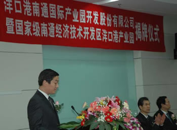 集團董事長、洋口港南通國際產業(yè)園開發(fā)公司董事長陳照東在儀式上致辭。他指出,作為南通國際產業(yè)園建設的運作平臺,新公司將根據(jù)國家產業(yè)政策導向和洋口港建設開發(fā)總體規(guī)劃,結合全市產業(yè)結構調整戰(zhàn)略,充分發(fā)揮市開發(fā)區(qū)的招商優(yōu)勢和市級國資公司的融資優(yōu)勢,加快開發(fā)建設步伐;要堅持快節(jié)奏啟動、高起點規(guī)劃、大力度招商、規(guī)范化運作,努力將南通國際產業(yè)園建設成國有資本積聚、新興產業(yè)特色鮮明的工業(yè)園區(qū),做到“一年一個樣、三年大變樣”,為全市大港口、大園區(qū)、大產業(yè)戰(zhàn)略貢獻力量。