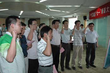 6月30日,集團(tuán)黨委召開(kāi)紀(jì)念“七一”暨表彰大會(huì),集團(tuán)領(lǐng)導(dǎo)班子成員、所屬各基層黨組織負(fù)責(zé)人、優(yōu)秀黨員及優(yōu)秀黨務(wù)工作者代表70余人出席。 會(huì)上,集團(tuán)黨委授予南通科技黨委、江山股份黨委、石化總支、離休支部以及產(chǎn)控直屬支部“五好”黨組織稱(chēng)號(hào),表彰了錢(qián)永康等47名優(yōu)秀黨員和陶坤山等23名優(yōu)秀黨務(wù)工作者。 南通科技黨委代表“五好”黨組織做了《緊扣中心服務(wù)大局、凝心聚力發(fā)揮作用》的交流發(fā)言,優(yōu)秀黨務(wù)工作者及優(yōu)秀黨員代表也結(jié)合各自實(shí)際,介紹了圍繞經(jīng)濟(jì)工作、創(chuàng)新開(kāi)展黨建工作的經(jīng)驗(yàn)和堅(jiān)定信念、立足本職、爭(zhēng)當(dāng)優(yōu)秀黨員的先進(jìn)事跡。 集團(tuán)黨委書(shū)記、董事長(zhǎng)陳照東代表黨委作報(bào)告。他總結(jié)了2009年黨建工作,通報(bào)了今年上半年集團(tuán)經(jīng)濟(jì)運(yùn)行和主要工作情況,以“突出重點(diǎn),全面完成年度目標(biāo)任務(wù)”為題就下半年經(jīng)濟(jì)工作提出要求,以“開(kāi)展創(chuàng)先爭(zhēng)優(yōu)”和“爭(zhēng)做勤廉表率”為重點(diǎn)就下一階段黨建工作作出部署。 會(huì)議號(hào)召各級(jí)黨組織和全體黨員抓住經(jīng)濟(jì)復(fù)蘇機(jī)遇,將黨建工作與經(jīng)濟(jì)工作緊密結(jié)合,抓好基層組織和黨員隊(duì)伍建設(shè),加強(qiáng)黨風(fēng)廉政建設(shè)和監(jiān)督保障工作,為完成全年目標(biāo)、實(shí)現(xiàn)經(jīng)濟(jì)跨越發(fā)展而努力拼搏!