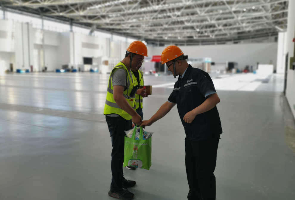 連日高溫,驕陽(yáng)似火。為做好高溫季節(jié)防暑降溫工作,切實(shí)保障一線職工的安全健康,7月22日,方拓消防副總經(jīng)理孫濤來(lái)到南通國(guó)際會(huì)議中心,為在高溫天氣下仍堅(jiān)持在項(xiàng)目現(xiàn)場(chǎng)開(kāi)展工作的員工送去高溫慰問(wèn)。