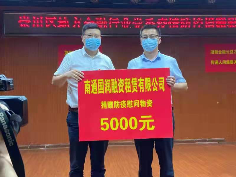 國潤租賃作為南通市融資租賃行業(yè)的領(lǐng)軍人物,第一時(shí)間響應(yīng),黨支部副書記吳小兵同志代表公司向抗疫一線社區(qū)捐贈(zèng)5000元防疫物資,助力于街道及社區(qū)的疫情防控工作。