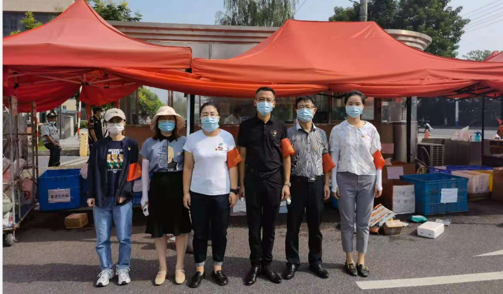 園區(qū)防疫是阻斷疫情傳播最基礎(chǔ)、最關(guān)鍵的環(huán)節(jié)。由于入駐企業(yè)較多,當(dāng)前智匯產(chǎn)業(yè)園門崗排查任務(wù)重,特別是早高峰時段,車輛人員集中,導(dǎo)致通行不暢。為積極投身園區(qū)疫情防控工作,國盛黨支部主動聯(lián)系園區(qū),組織黨員先鋒隊和青年突擊隊分別于8月26日和27日連續(xù)兩天開展防疫志愿活動。早上八點,黨員和青年志愿者們佩戴紅袖章,為進(jìn)入園區(qū)的人員測量體溫并檢查行程信息、講解防疫知識,讓群眾從思想上重視、行動上配合,牢記勤洗手、戴口罩、常消毒的防疫要點。