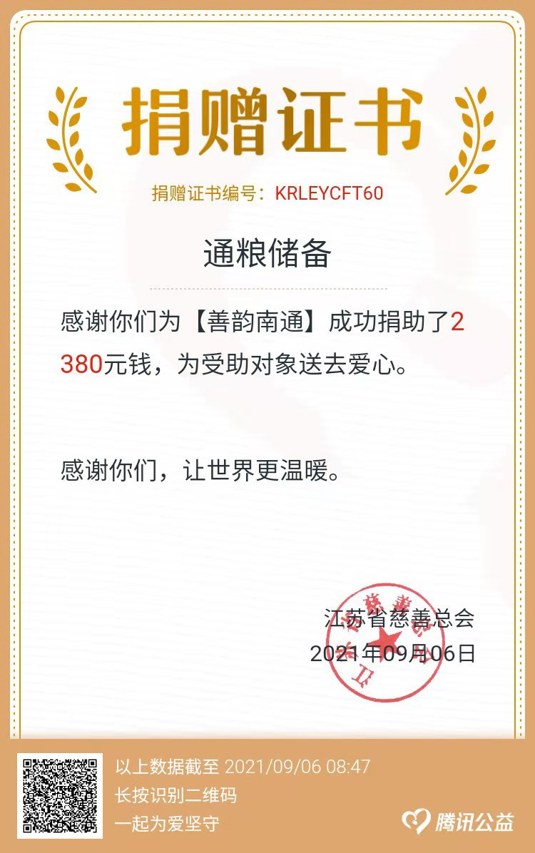 為認(rèn)真落實(shí)《中華人民共和國(guó)慈善法》,大力弘揚(yáng)中華民族扶貧濟(jì)困優(yōu)良傳統(tǒng),廣泛號(hào)召?lài)?guó)有及國(guó)有控股企業(yè)干部職工踐行社會(huì)主義核心價(jià)值觀,關(guān)愛(ài)弱勢(shì)群體,積極奉獻(xiàn)愛(ài)心,按市民政局等單位《2021年“博愛(ài)在南通 慈善暖江?!币蝗站杌顒?dòng)方案》的通知要求,在產(chǎn)控集團(tuán)的統(tǒng)一領(lǐng)導(dǎo)下,通糧儲(chǔ)備組織全體員工于9月4日開(kāi)展了線上一日捐活動(dòng)。