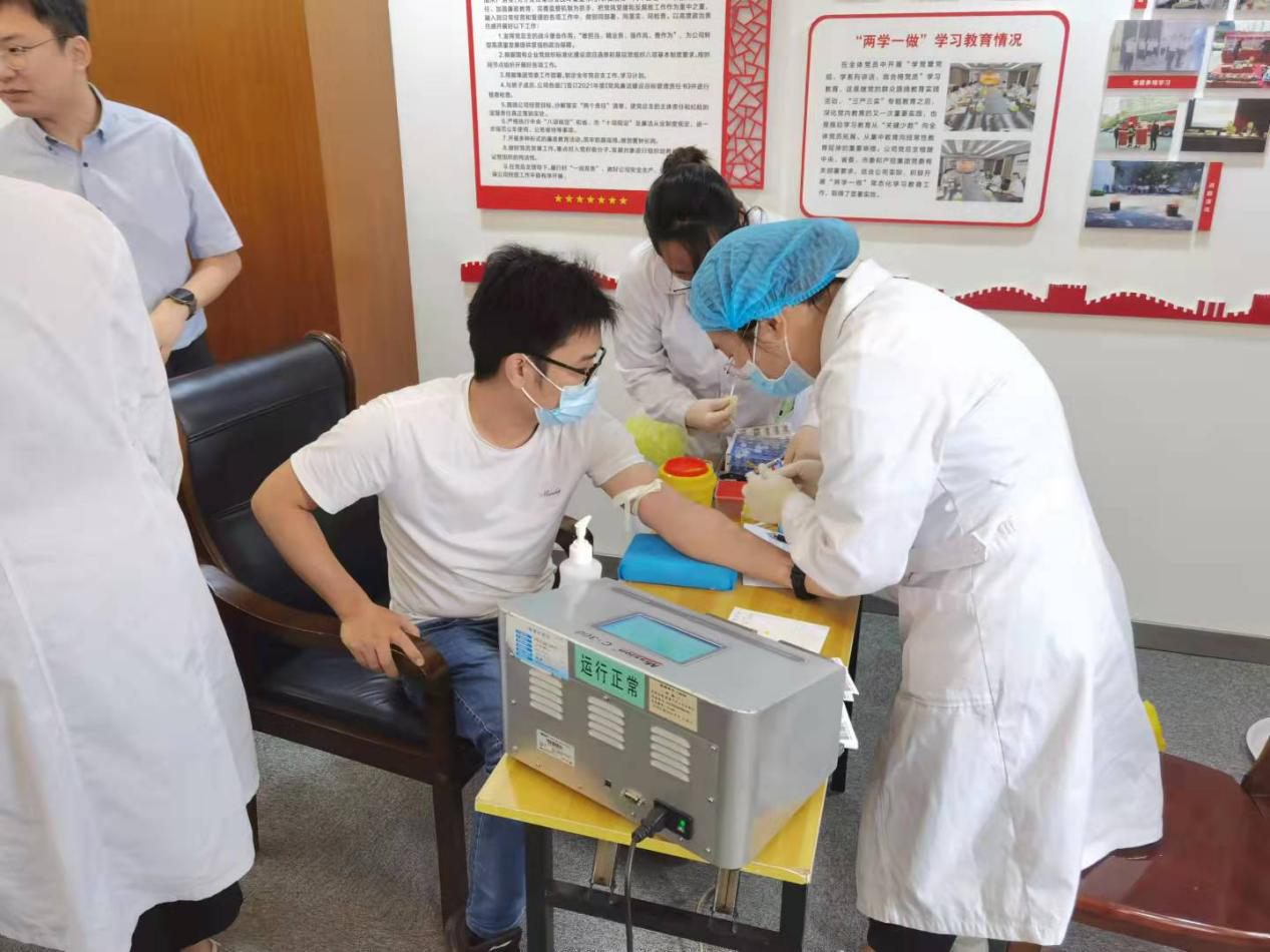 當(dāng)天上午8時20分,集團(tuán)系統(tǒng)黨員干部職工就早早來到了集團(tuán)獻(xiàn)血現(xiàn)場,在工作人員的指引下,嚴(yán)格遵循疫情防控規(guī)定和獻(xiàn)血程序,有條不紊地進(jìn)行登記填表、血型化驗、血液采集等流程。除集團(tuán)組織獻(xiàn)血以外,部分大型投資企業(yè)還在各自單位開設(shè)了獻(xiàn)血點。