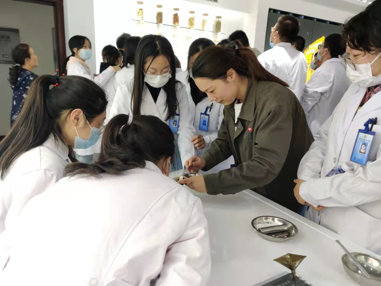 質(zhì)管處質(zhì)量工程師何峰帶領一行人參觀了多功能展廳,介紹了公司的基本情況、主打產(chǎn)品的功能功效。不少學生表示服用過公司正柴胡飲顆粒、王氏保赤丸產(chǎn)品,還有學生對王氏保赤丸的抄丸工具以及操作方法產(chǎn)生了濃厚興趣,現(xiàn)場體會抄丸、蓋塞等步驟。何峰還向?qū)W生隆重介紹了自己種植的“小藥園”,有公司使用的中藥材金蕎麥、半夏和佛甲草等,介紹了它們的功效、藥用部位。 隨后學生們參觀了王氏保赤丸生產(chǎn)車間,車間管理人員詳細介紹了王氏保赤丸的歷史,國家非遺技藝泛丸工序的制作過程,大家紛紛感嘆中華中醫(yī)藥制作技藝的精妙。 |