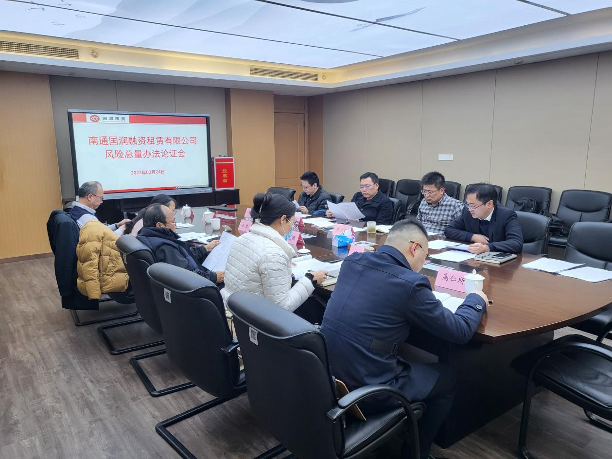 為推動公司高質(zhì)量發(fā)展,加快轉(zhuǎn)型升級、控制經(jīng)營風(fēng)險,國潤租賃邀請市金融局、國資委和銀行、法律等方面專家,共同對《國潤租賃風(fēng)險總量管理辦法》進(jìn)行研究論證。