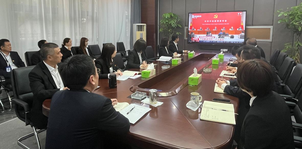 會議集中觀看了中共中央介紹解讀黨的二十大報告新聞發(fā)布會,結(jié)合發(fā)布會所介紹的“新時代十年的偉大變革、推動高質(zhì)量發(fā)展、推進(jìn)法治中國建設(shè)、健全全面從嚴(yán)治黨體系”等內(nèi)容,國泰公司黨總支委員、副總經(jīng)理夏穎為全體黨員、管理人員講授了一堂以“學(xué)習(xí)領(lǐng)會新理論,奮力譜寫新篇章”為主題的黨課,帶領(lǐng)大家進(jìn)一步領(lǐng)會黨的二十大報告內(nèi)容。 通過觀看解讀“輔導(dǎo)”和聆聽黨課的方式,大家對黨的二十大精神有了進(jìn)一步的理解。黨的二十大報告主題鮮明、思想深邃、高屋建瓴、氣勢磅礴,為黨和國家事業(yè)的新發(fā)展描繪了美好前景,指明了前進(jìn)方向。大家表示,將立足工作實(shí)際,認(rèn)真學(xué)習(xí)貫徹落實(shí)黨的二十大精神,踔厲奮發(fā)、勇毅前行,努力開創(chuàng)國泰公司高質(zhì)量轉(zhuǎn)型發(fā)展新局面。