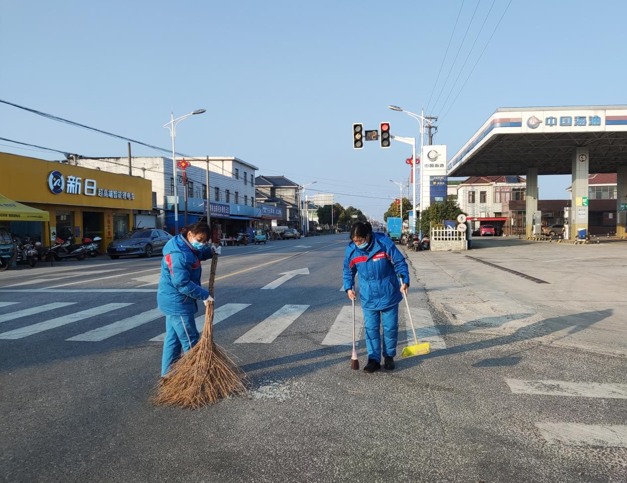 冬日的栟茶小鎮(zhèn),溫暖的陽光照耀,為寒冷的天氣帶來一絲暖意。中海油南通公司栟茶加油站站前道路,和往常一樣,車輛人流來來往往,當(dāng)班員工葛紅和蔡亞明在站內(nèi)引導(dǎo)客戶進(jìn)站加油。