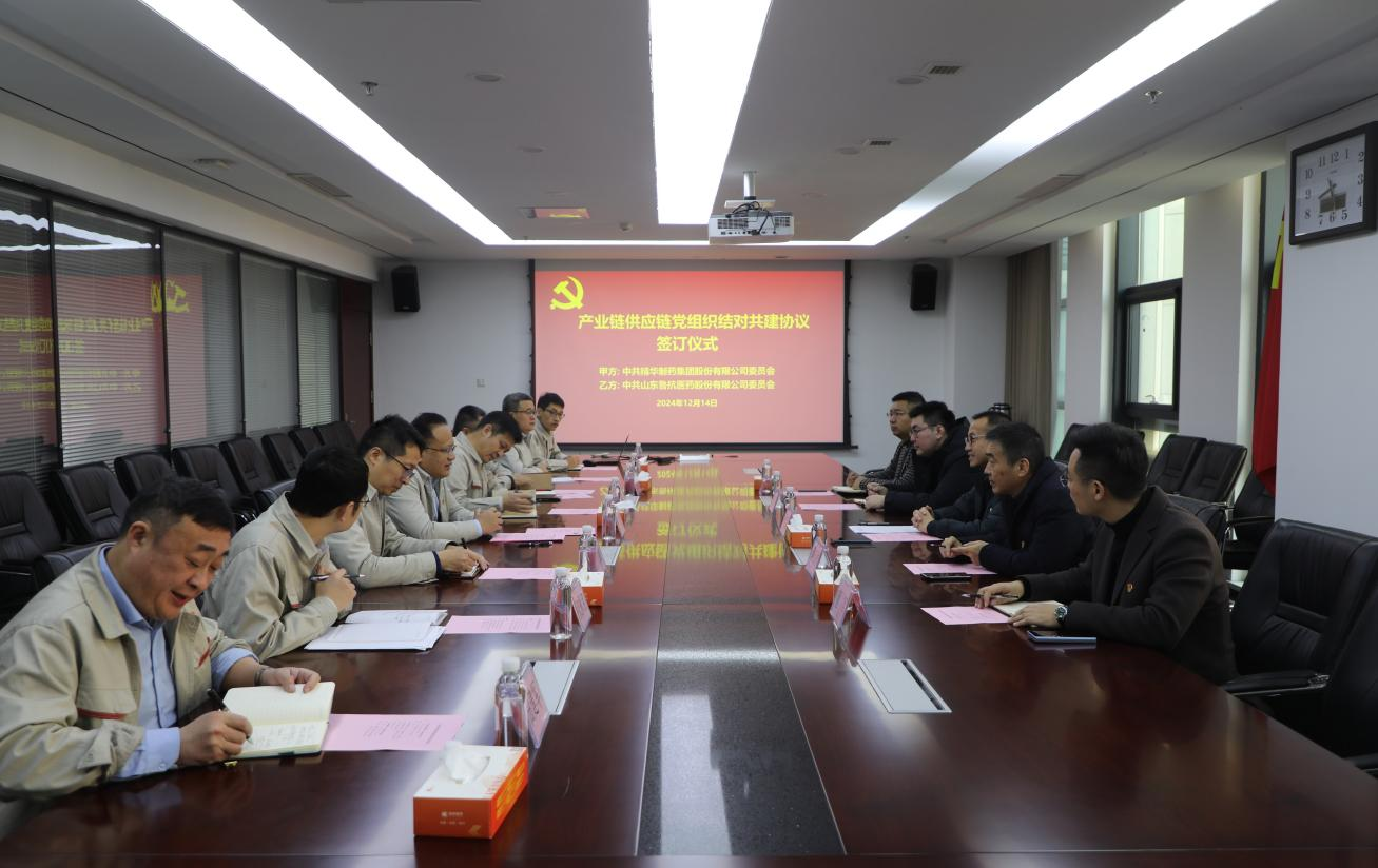 為進(jìn)一步學(xué)習(xí)貫徹黨的二十屆三中全會(huì)精神,創(chuàng)新黨建工作,以“黨建內(nèi)鏈”驅(qū)動(dòng)“產(chǎn)業(yè)外鏈”,不斷激發(fā)基層黨建活力,形成優(yōu)勢(shì)互補(bǔ)、資源共享,共同提高、合作共贏(yíng)的黨建工作格局,經(jīng)前期溝通,受魯抗醫(yī)藥邀請(qǐng),12月14日,精華制藥集團(tuán)股份有限公司黨委書(shū)記、董事長(zhǎng)尹紅宇、集團(tuán)副董事長(zhǎng)、江蘇森萱醫(yī)藥股份有限公司董事長(zhǎng)吳玉祥等一行5人赴山東魯抗醫(yī)藥股份有限公司開(kāi)展黨建共建活動(dòng)。